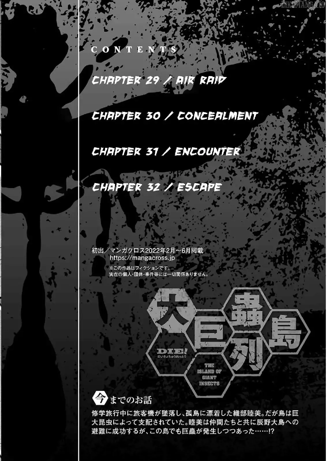 21st Century, Big Breasts, Bisexual Character/s, Blood and Gore, Borderline H, Dark Ambience, Fetish/es, Insect/s, LGBT Scenes, Male Demographic with Female Lead, Manga, Nudity, Rape, Sadomasochism, Sexual Innuendo, Survival, Torture, Violence, Young Female Lead